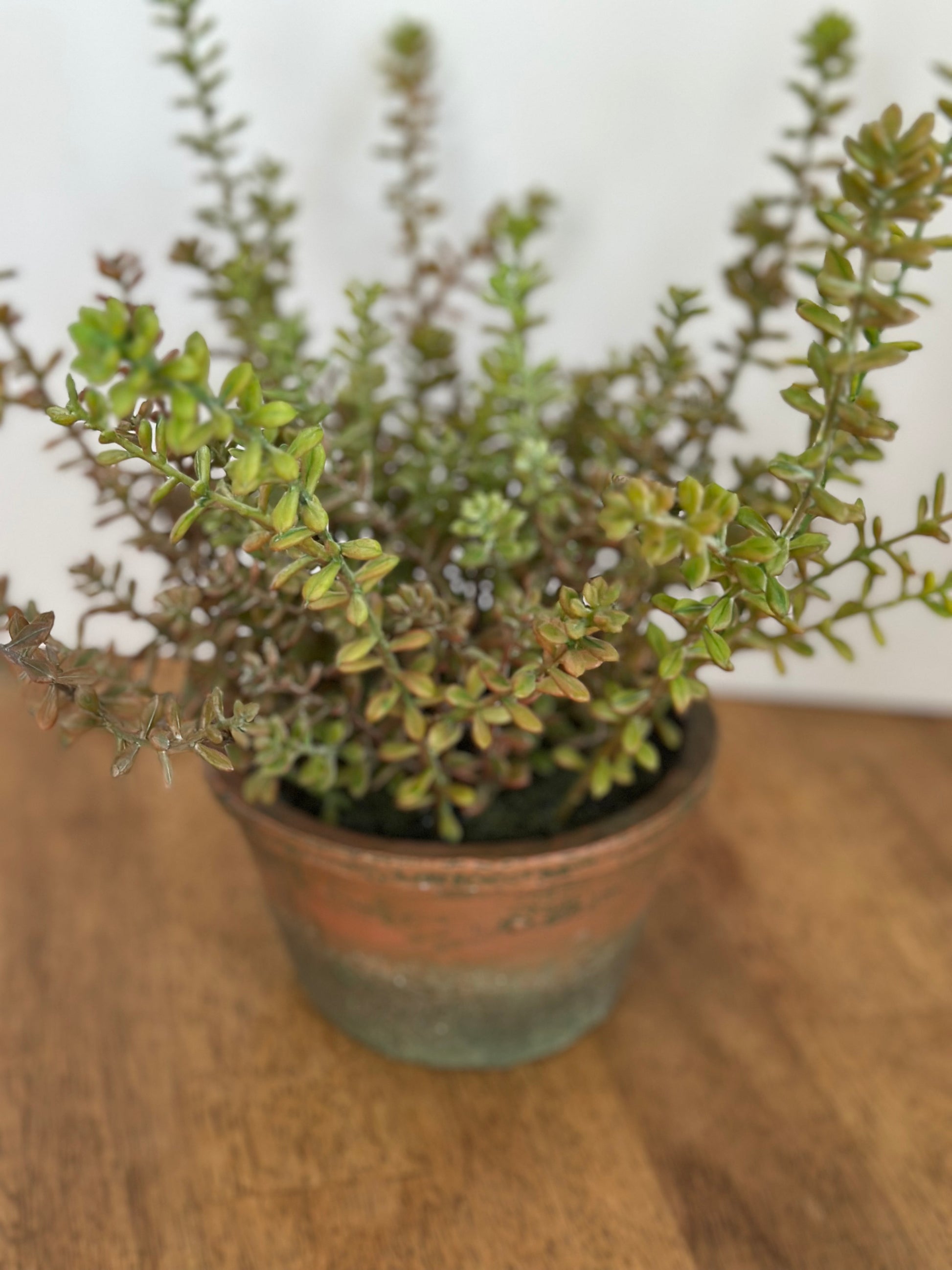 Artificial Potted Sedum 12". Beautiful Green/Terra-cotta Resin Pot