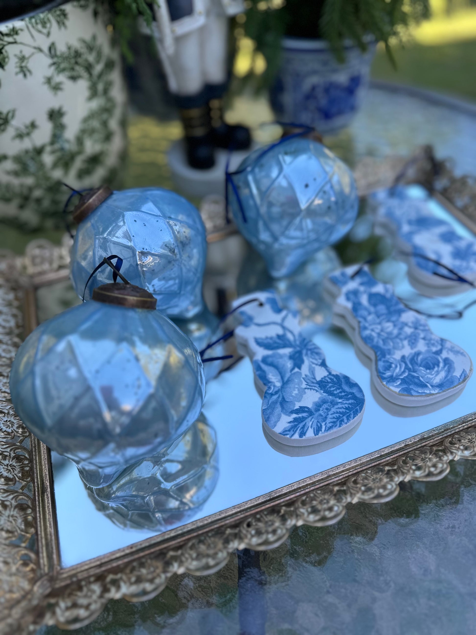 Blue Glass & Handmade Snowmen Christmas Ornaments (6)