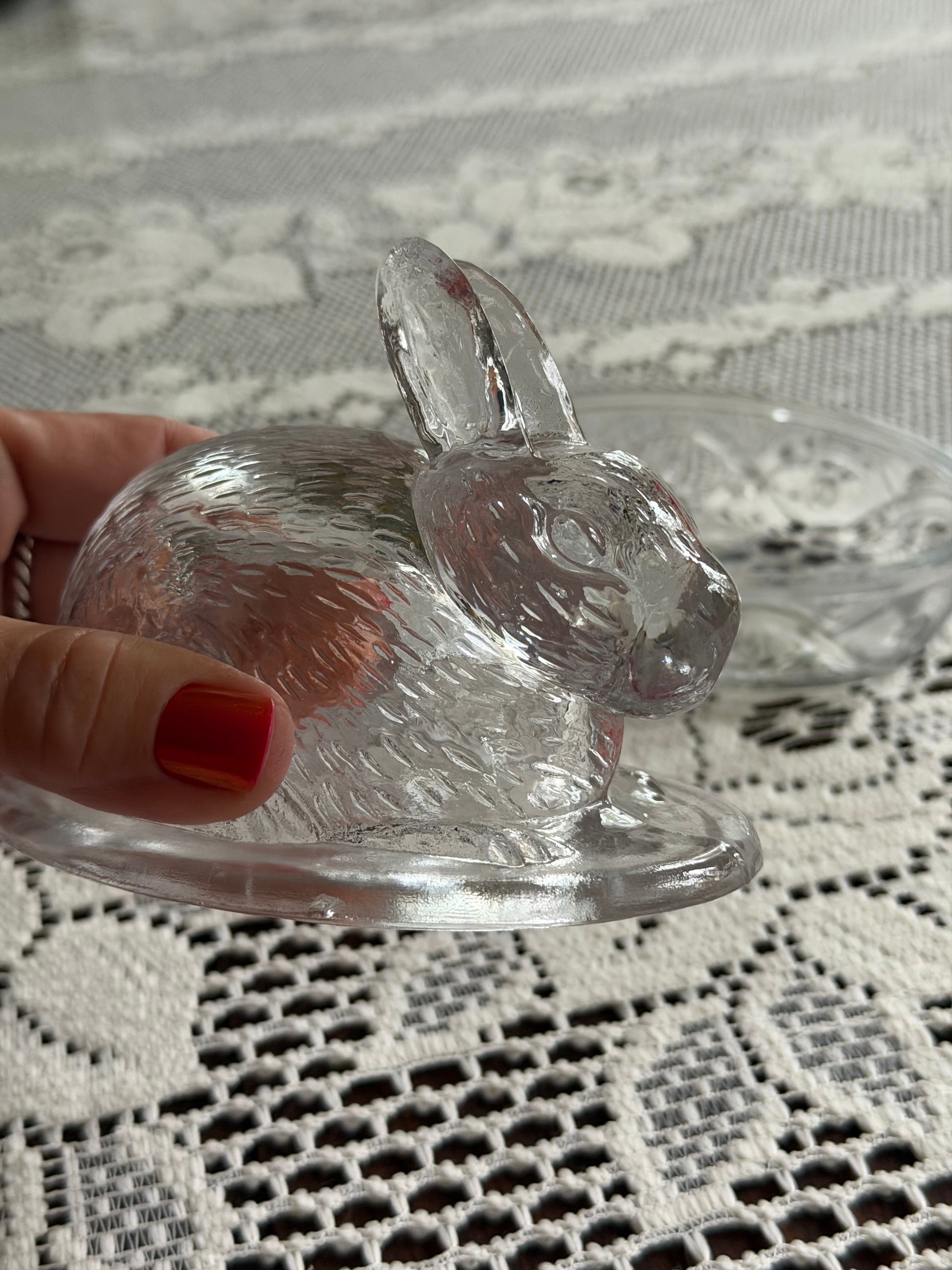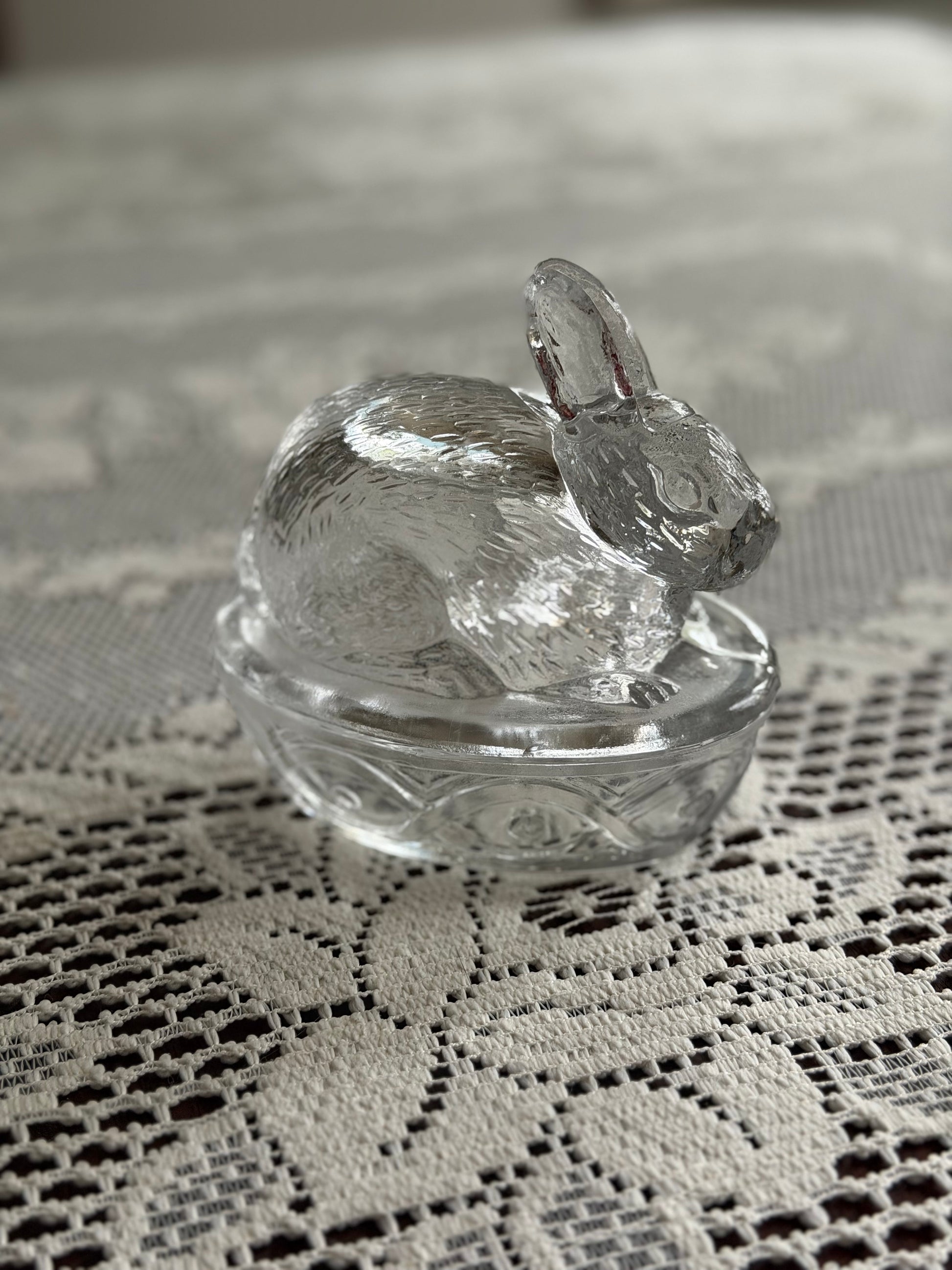 Glass Bunny Rabbit Lidded Dish