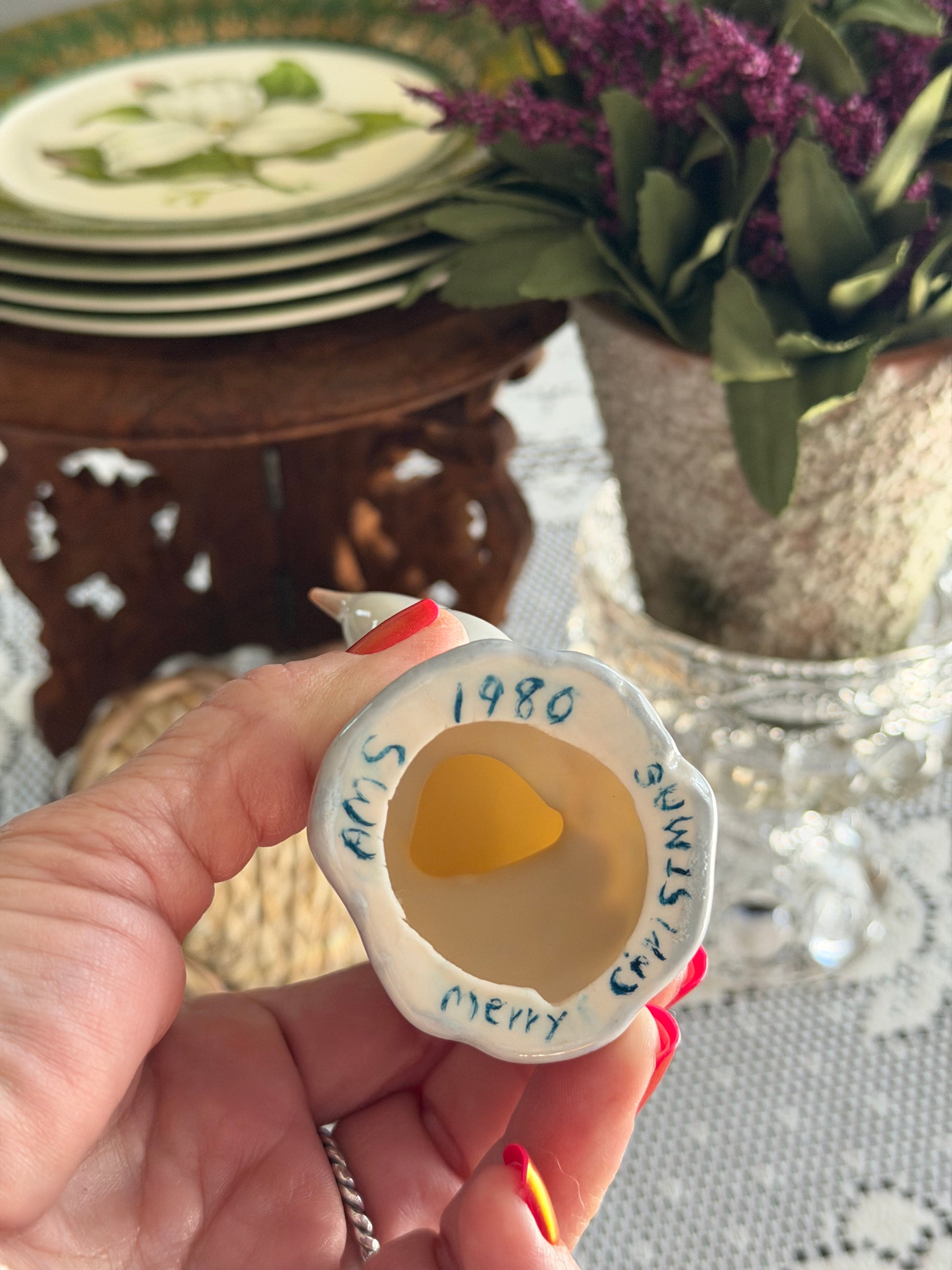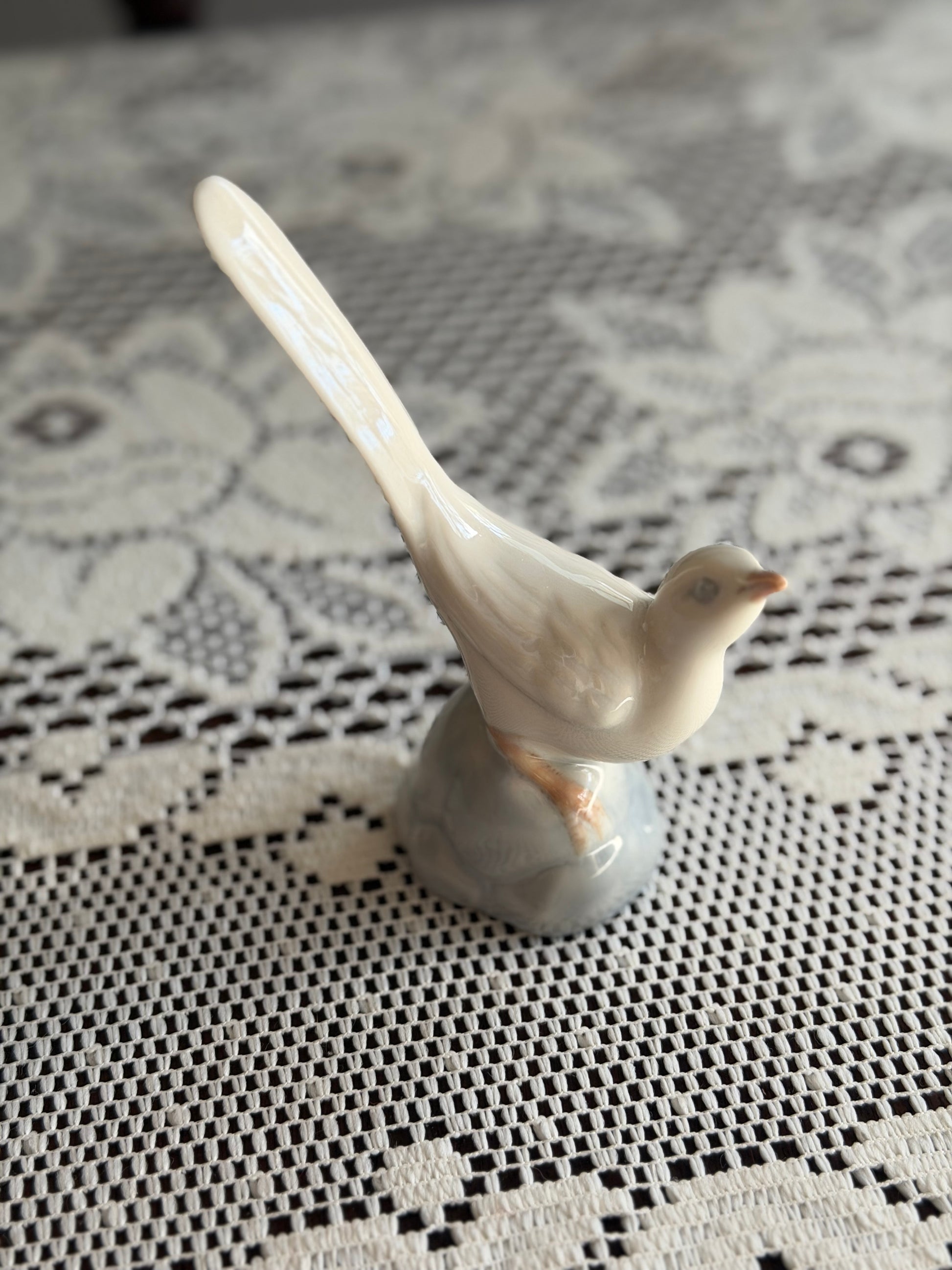 Long-tailed porcelain bird. This was given as a Christmas gift in 1980 as seen on the bottom of the base.