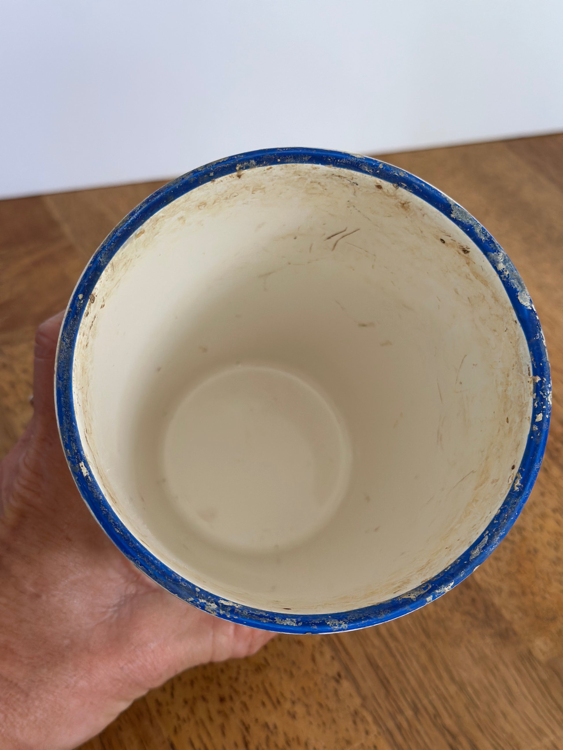 Vintage Blue & White Bird Floral Planter. Beautifully aged